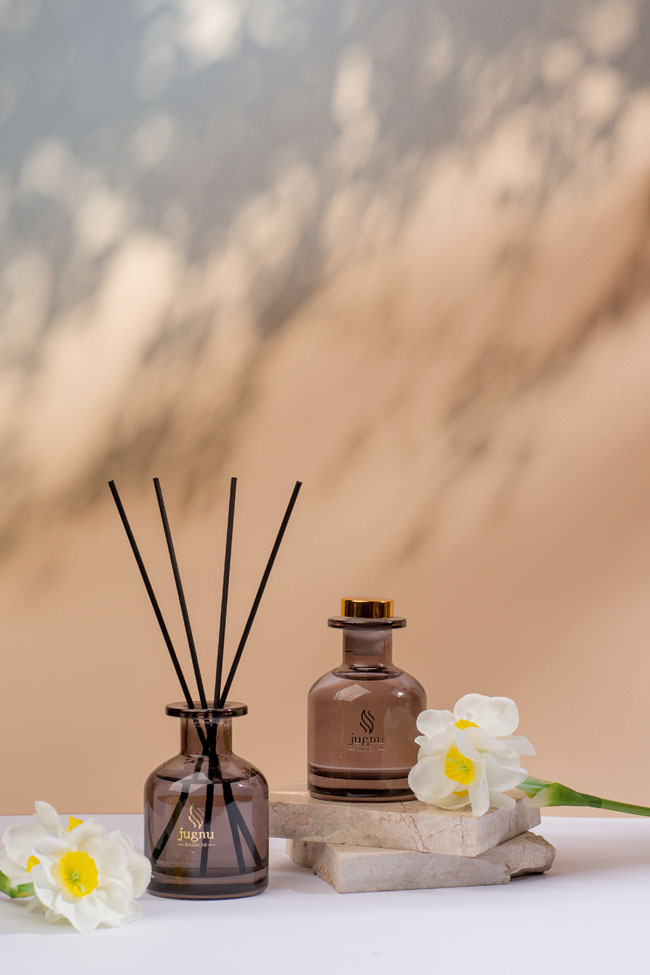 A luxury product photography project for Jugnoo, capturing the brand’s elegant diffusers and their signature fragrances. The shoot emphasized refined styling, soft lighting, and sophisticated details to reflect the brand’s essence of elegance and timeless aroma.