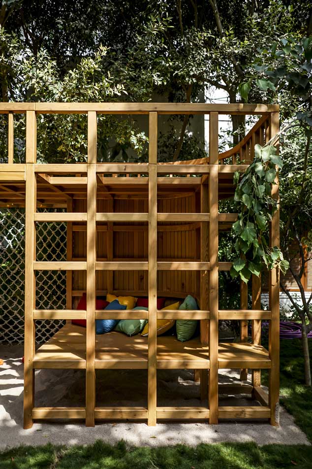 A visual study capturing the raw beauty of the wooden play structure in Karachi, highlighting natural textures, craftsmanship, and organic design elements that blend playfulness with architectural simplicity.
