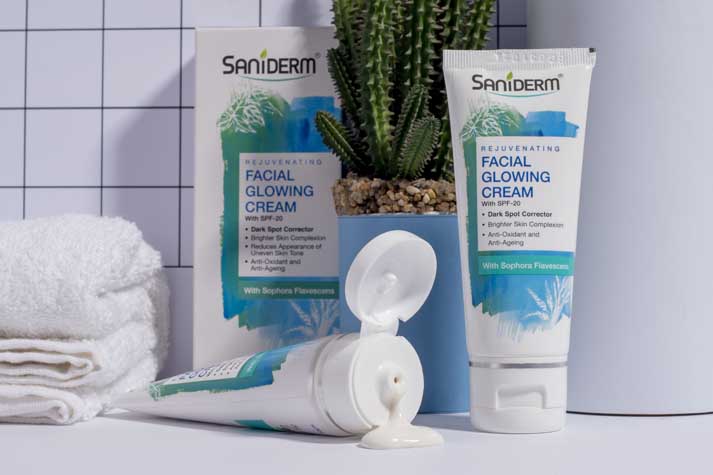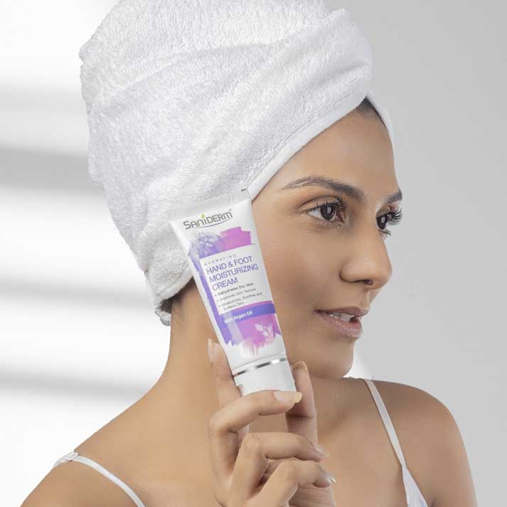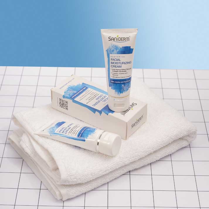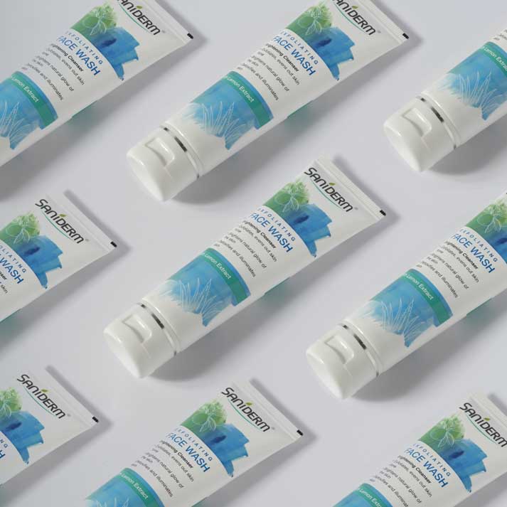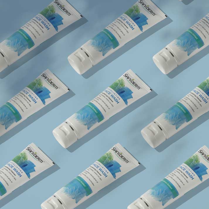 The Saniderm skincare product photography highlights the brand’s commitment to purity, protection, and clinical elegance. Each image is carefully crafted to reflect the clean, dermatological roots of the brand while maintaining a premium and aspirational aesthetic.